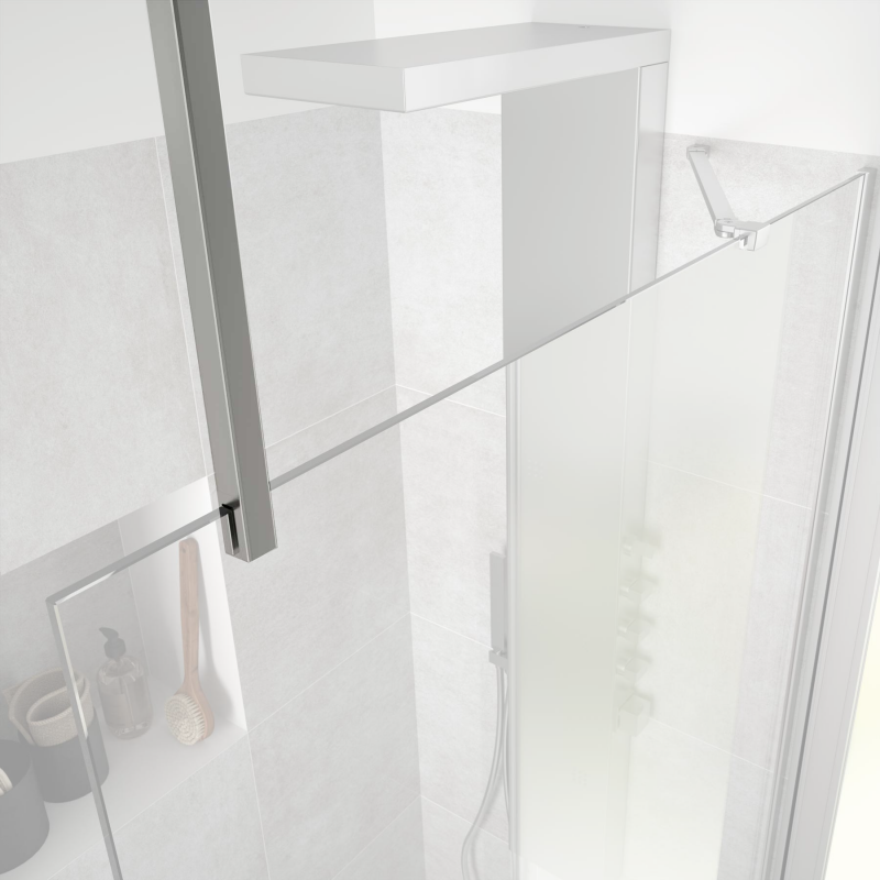 Ampliar Brazo de latón acabado en plata brillo para mamparas, ofrece mayor seguridad y sujeción al techo. Ajustable hasta 1050 mm para techos de hasta 3 metros.