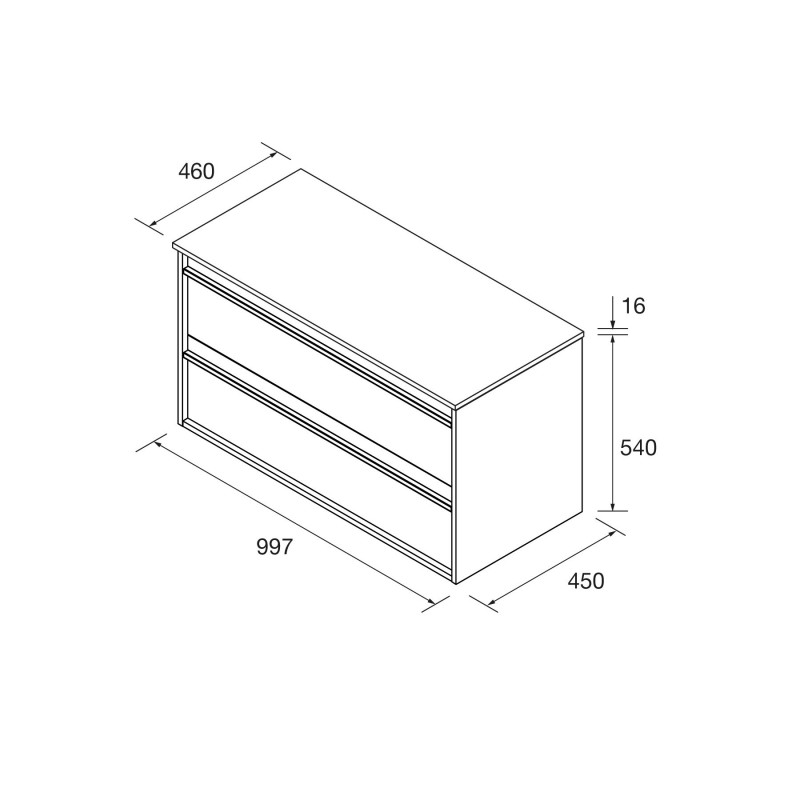 Compuesto de mueble Attila 1000mm de 2 cajones y encimera del acabado del mueble. Lavabo de posar no incluido.